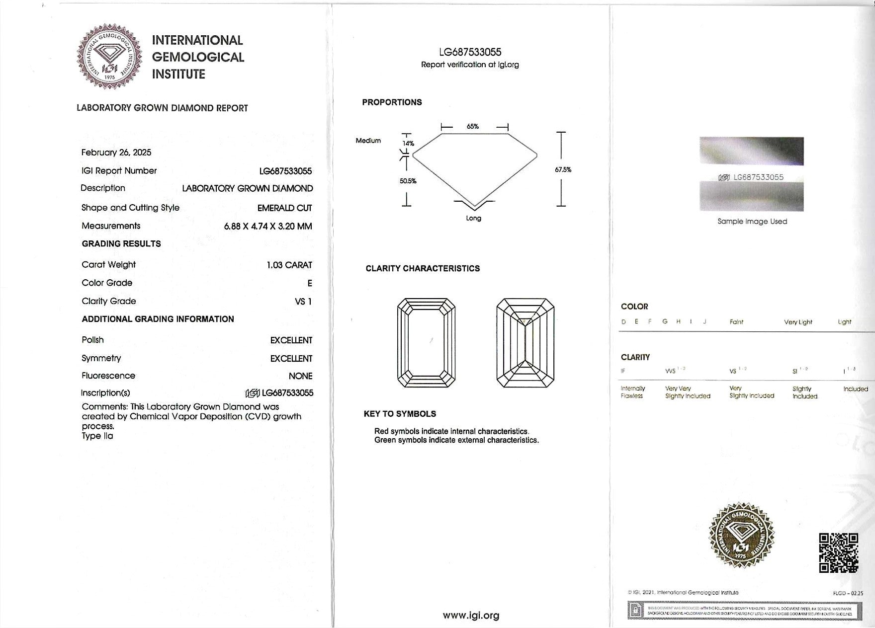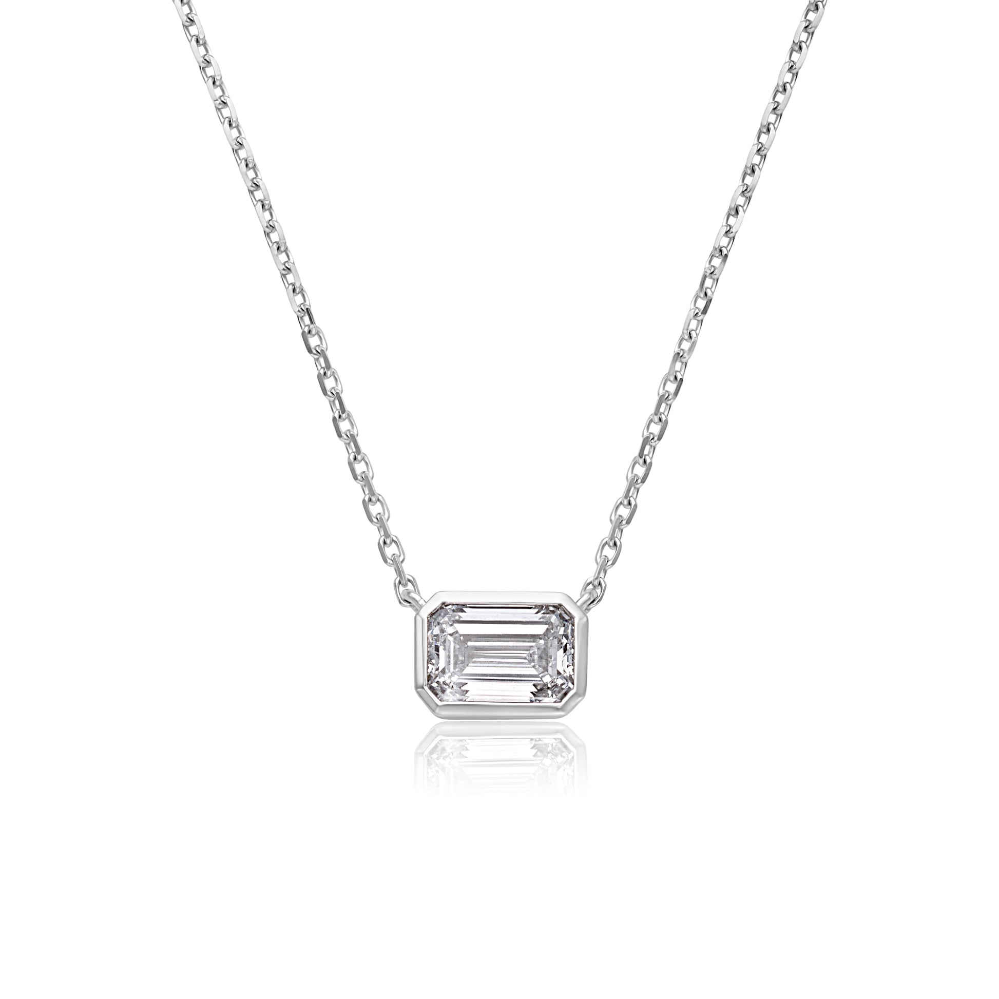 The Covenant Pendant necklace features a 1.03ctw emerald-cut IGI certified lab-grown diamond in an east west bezel setting in 14k white gold, which speaks of strength of commitment and clarity of heart. A symbol of unwavering love and promise.