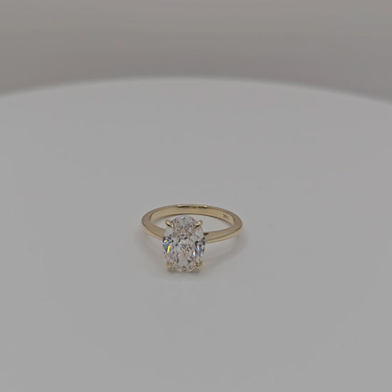 The Eden Ring features a 2.51 carat oval-cut lab diamond in an elegant solitaire setting of 14k yellow gold, as a nod to quiet beginnings and eternal beauty, symbolizing purity, restoration, and feminine strength.