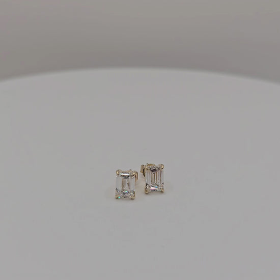 The Laurel Stud earrings feature 2.06ctw (1.03 carats each) emerald lab diamonds in 14k yellow gold, inspired by the laurel crown--a symbol of honor--these emerald studs bring polished confidence to any occasion. Designed for those who wear dignity like a jewel.