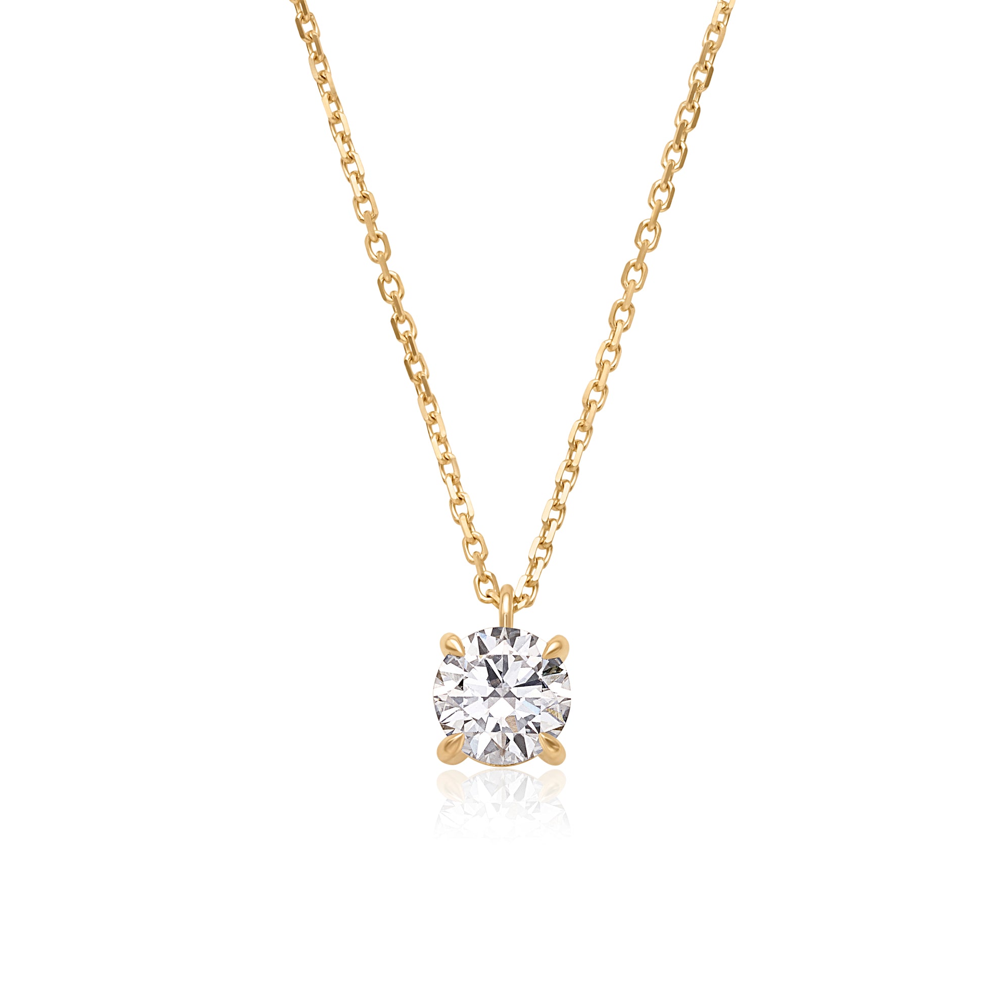 The Still Waters Pendant Necklace features a 1.01ctw round brilliant IGI certified Lab-grown diamond set in 14k yellow gold, resting close to the heart--crafted for moments of stillness, beauty, and grace. A gentle promise made visible.